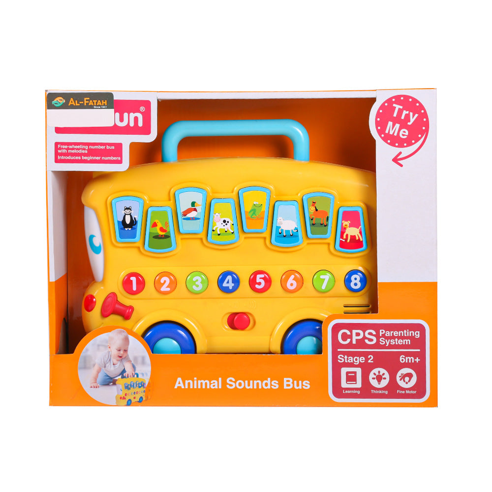 The 0676 WINFUN ANIMAL SOUND BUS PC has a realistic appearance and includes a wide variety of animal sound effects. It includes 8 interactive animal buttons with a recordable voice option, allowing you to record your own phrases. Great for encouraging learning and playing, this bus will keep your kids entertained for hours.
