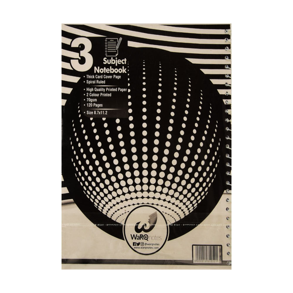 1203 WARQNOTES 3 SUBJECT NOTE BOOK RING