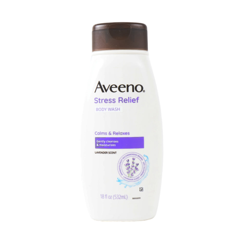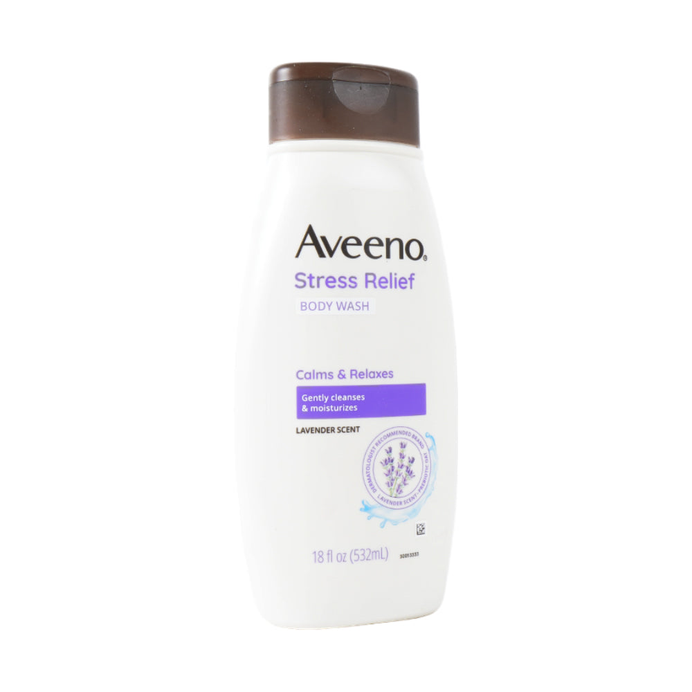 AVEENO BODY WASH STRESS RELIEF LAVENDER SCENTED 532 ML helps you relax with calming aromas of lavender and chamomile while its creme-rich lather helps keep skin feeling hydrated and healthy-looking. Enjoy the perfect balance of relaxation and hydration with this body wash.