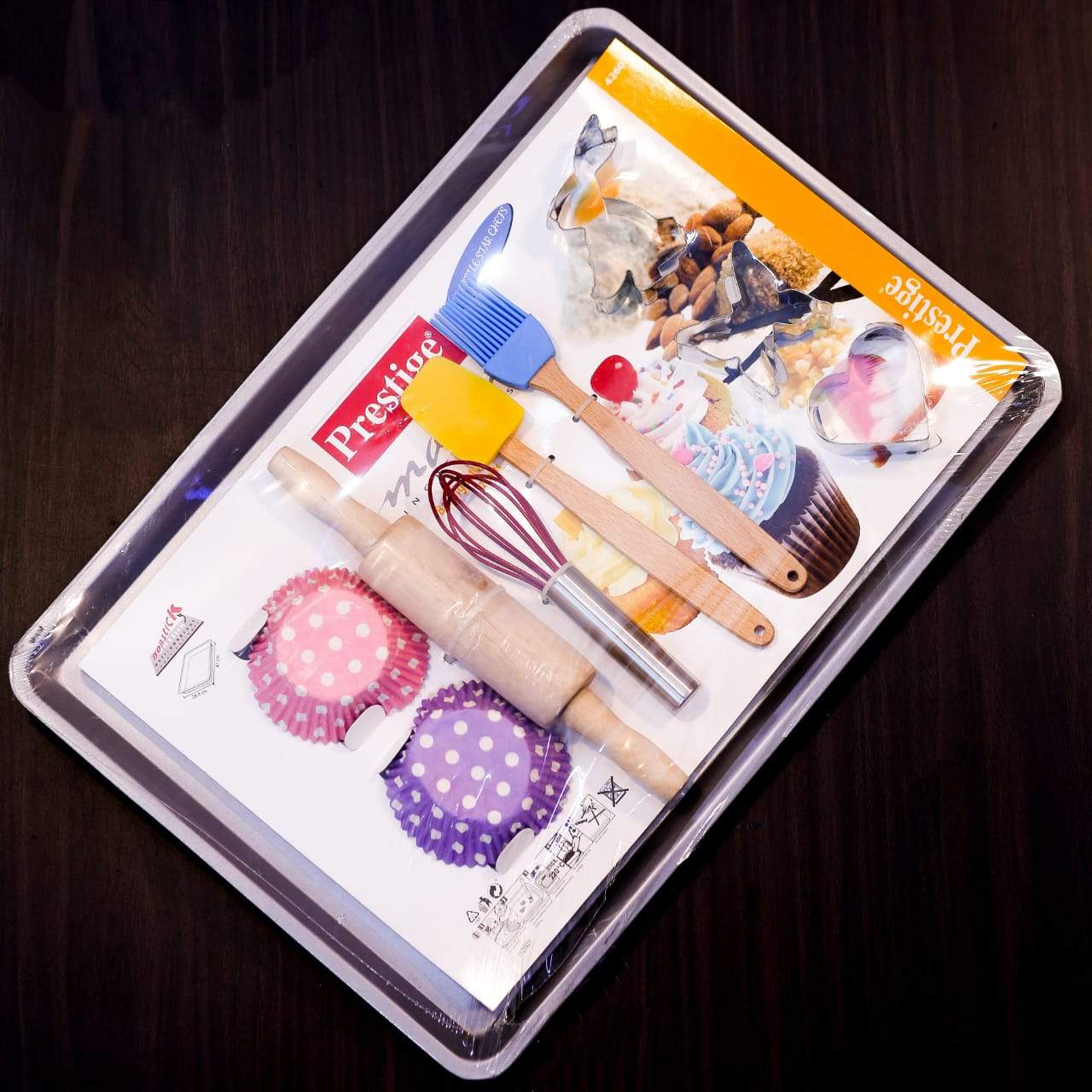 Make your children enjoy the real-like baking experience with the Prestige Baking Set. It is an ideal tool set for children. This set includes cake shaped silicone mould, 6 cup silicone tart tray, silicone muffin cups, cookie cutters, mixing spoon, whisk, rolling pin and spatula.