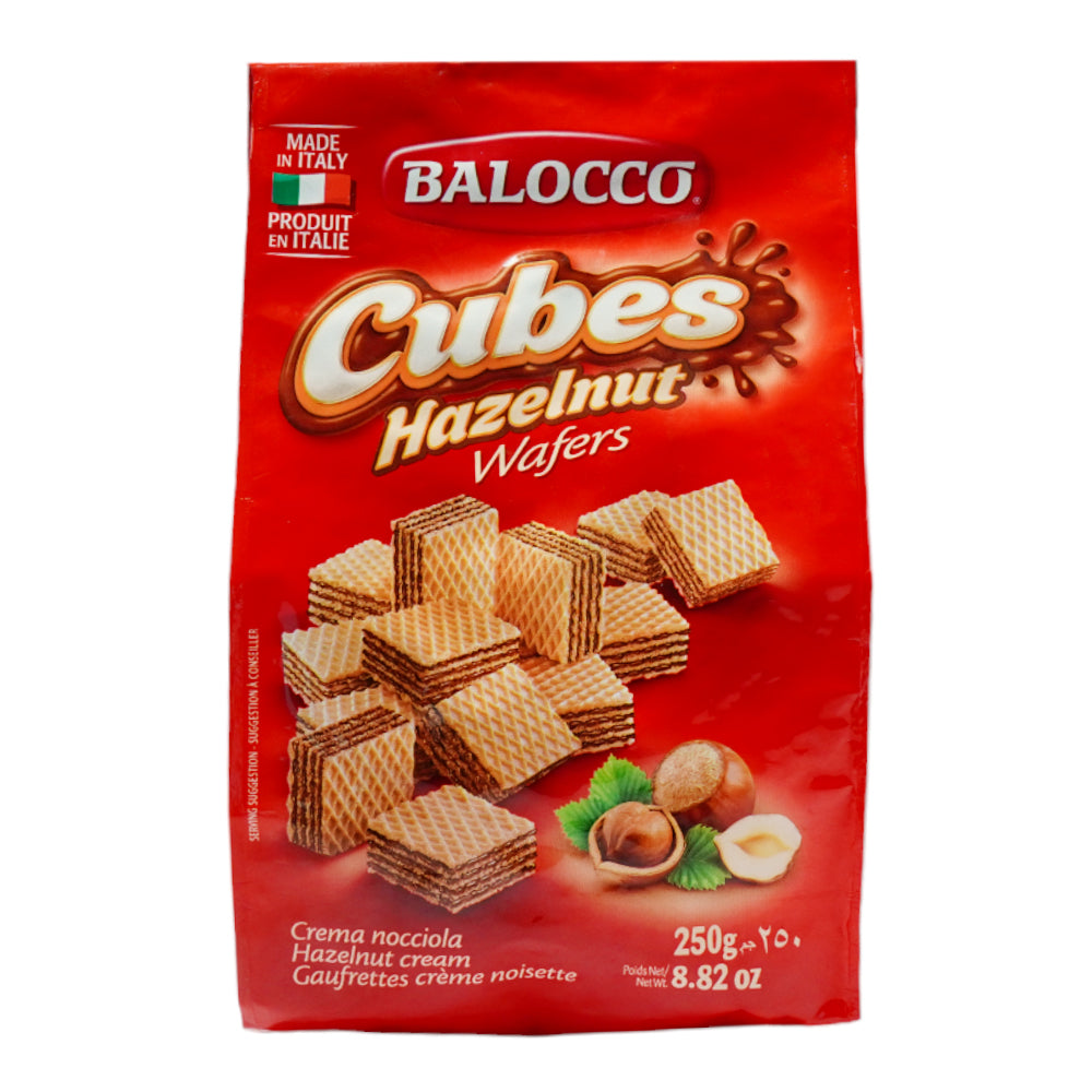 BALOCCO WAFERS BISCUIT HAZEL NUT 250GM is a crunchy and flavorful Italian biscuit, made with high-quality hazelnuts and natural ingredients. The wafer biscuit offers the perfect sweetness and has a pleasant nutty aftertaste. Enjoy the distinct taste of these wafer biscuits, perfect for any occasion.