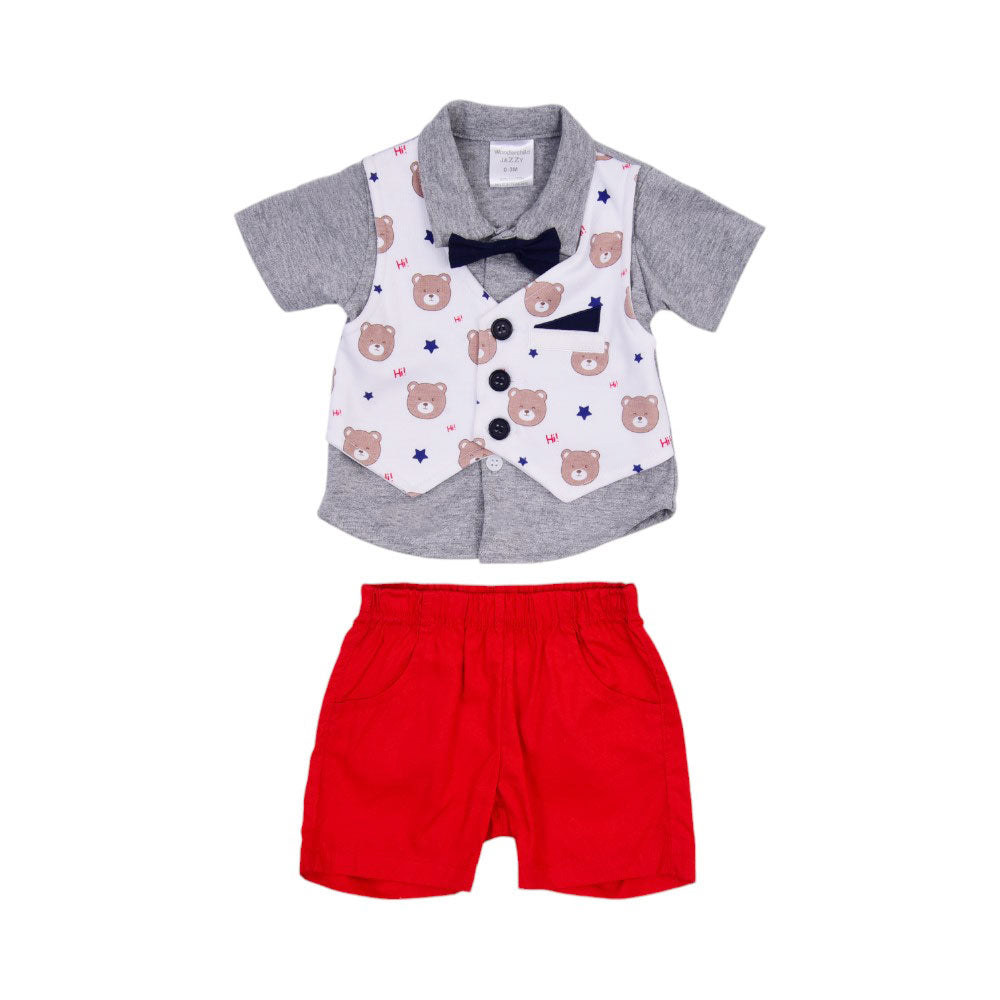 BOYS S/S 3 PCS PACK NICKER SUIT 0-3 M MZS-24 2895