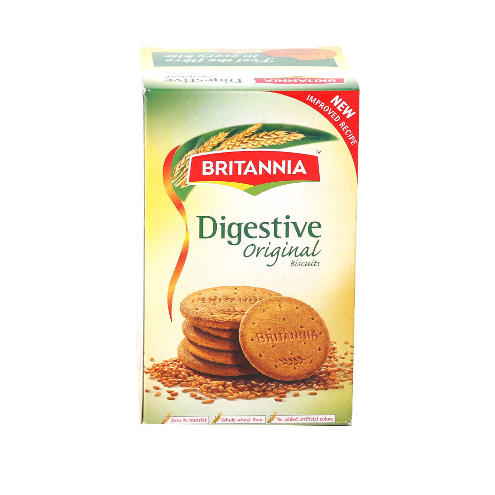 Britannia NutriChoice Digestive Biscuits are fibre rich biscuits packed with the richness of wheat flour (atta) and bran. With every bite, you experience the coarseness of this fibre rich healthy biscuit. These Digestive cookies are baked to precision, a perfect healthy snack.