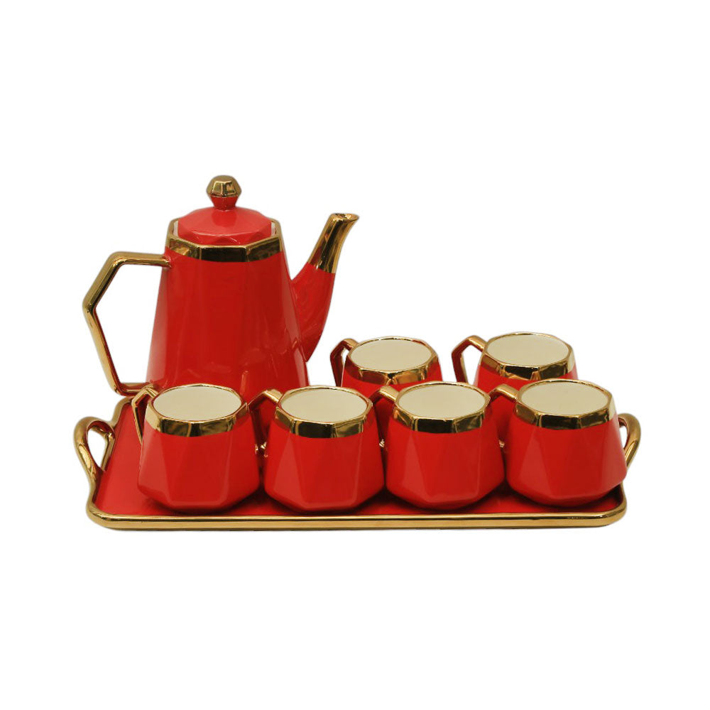 COFFEE SET 9PC CERAMIC YLG3439-8P RED AH