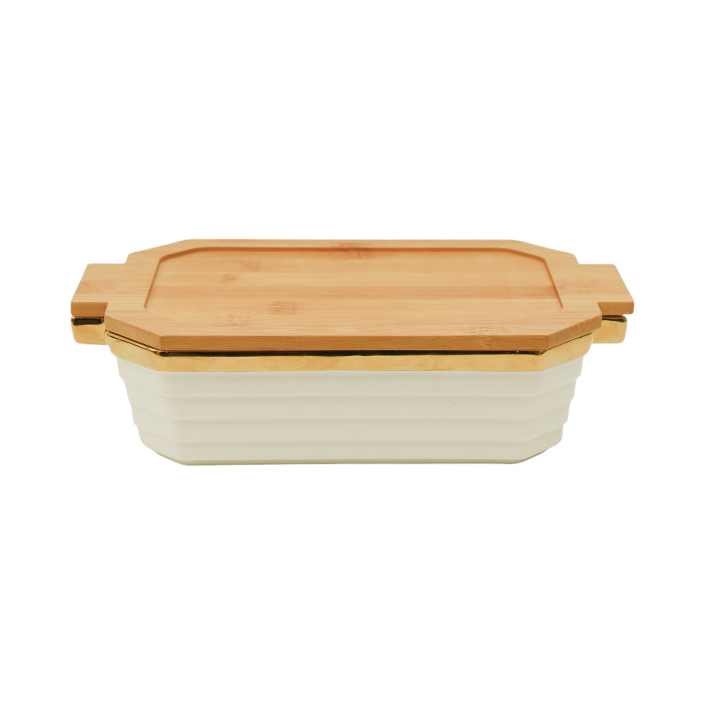 DISH RECTANGULAR PORCELAIN WITH WOODEN COVER ZH22KIK