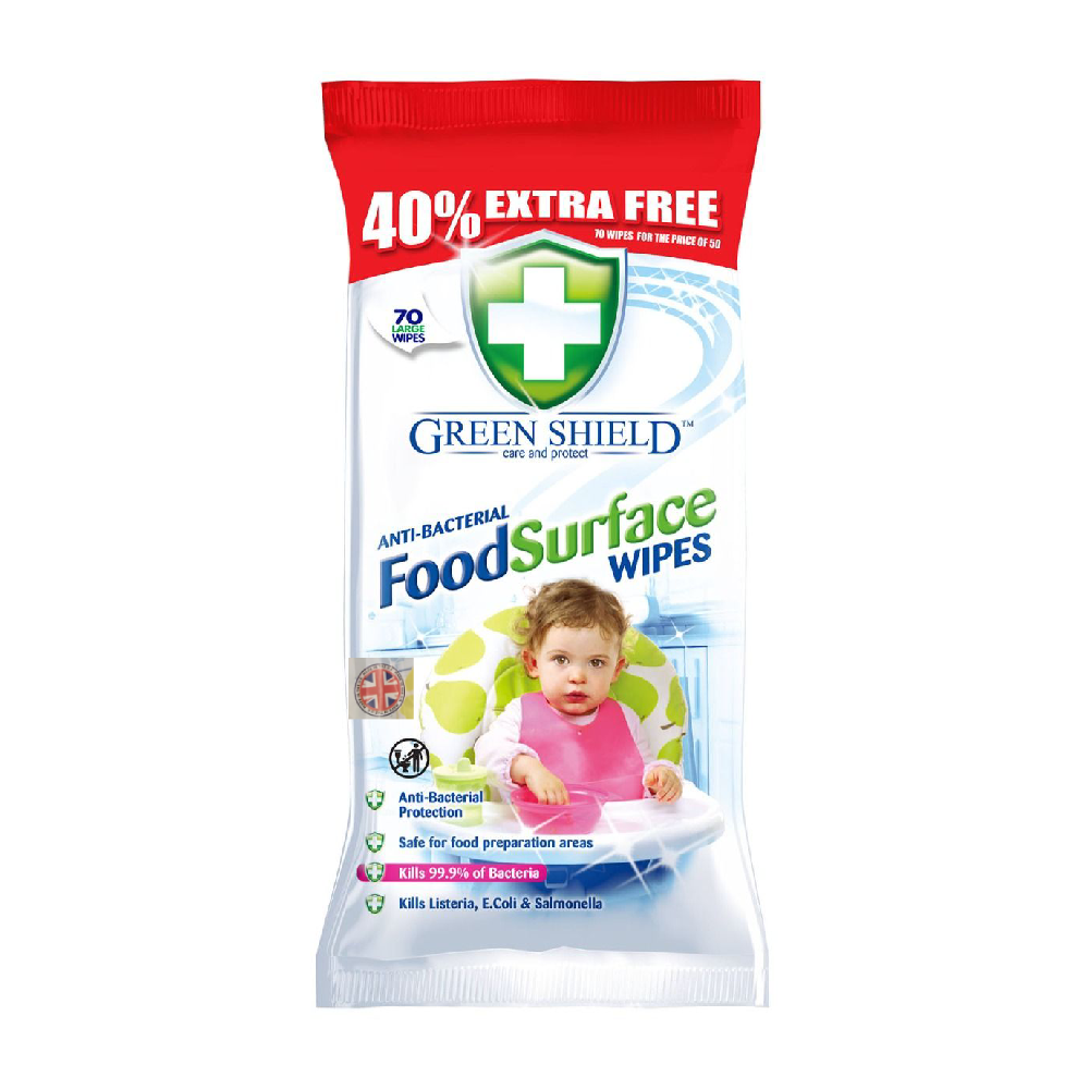 GREEN SHIELD WIPES FOOD SURFACE 70PC