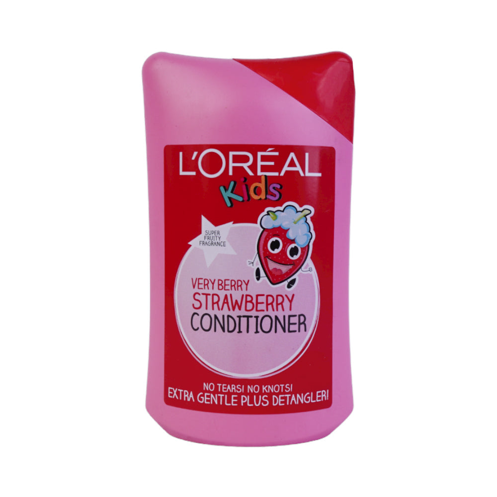L'Oreal Kids Conditioner Very Berry Strawberry 250ml is a nourishing conditioner formulated with natural ingredients and vitamins. Its mild, tear-free formula adds extra nutrients to damaged hair, smoothing the hair cuticles and restoring shine. Delicately scented with strawberry, its results leave hair softer, healthier and more manageable.