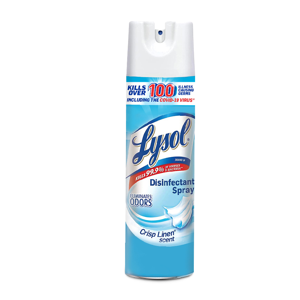 This disinfectant spray eliminates odors and kills 99.9 percent of mold and mildew on most household surfaces. It even sanitizes soft surfaces and deodorizes the air. This value pack includes three, 19 oz. Lysol Disinfecting Spray Cans and leaves behind a fresh crisp linen scent with every spray.