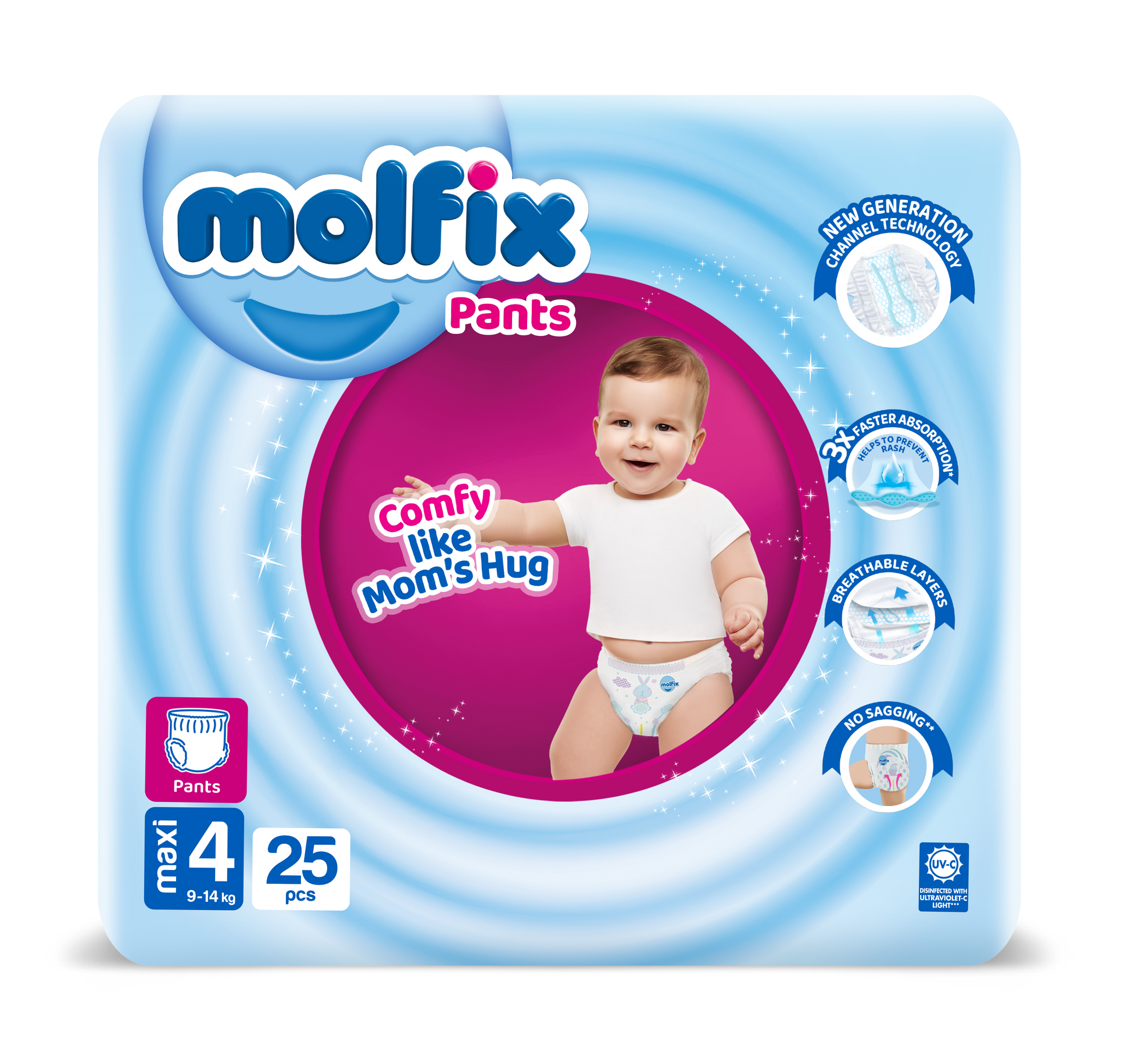 Molfix Baby Diapers provide ease of use The New Molfix Comfort Fix instantly absorbs and retains any fluid and keeps the skin dry. It ensures freedom of movement thanks to its anatomical structure and elastic sidebands. Also, it is skin-friendly!