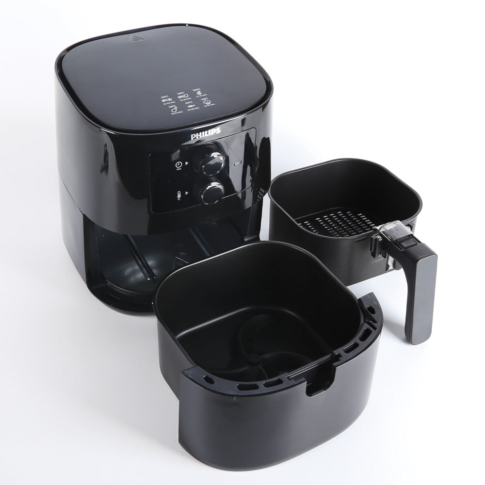 Discover the Philips Air Fryer HD9200, now available at Al Fatah. This Philips Air Fryer in Pakistan features innovative Rapid Air technology for healthier frying with less oil. Boasting a 0.8 kg capacity and 4.1L volume, it effortlessly handles a variety of dishes, including frying, baking, grilling, roasting, and reheating. Its sleek black design and easy-to-use controls, including adjustable time and temperature settings, ensure convenience and versatility. Enjoy personalized recipes and quick, easy cleaning with this essential kitchen appliance. Upgrade your cooking experience with the Philips Air Fryer HD9200 today.