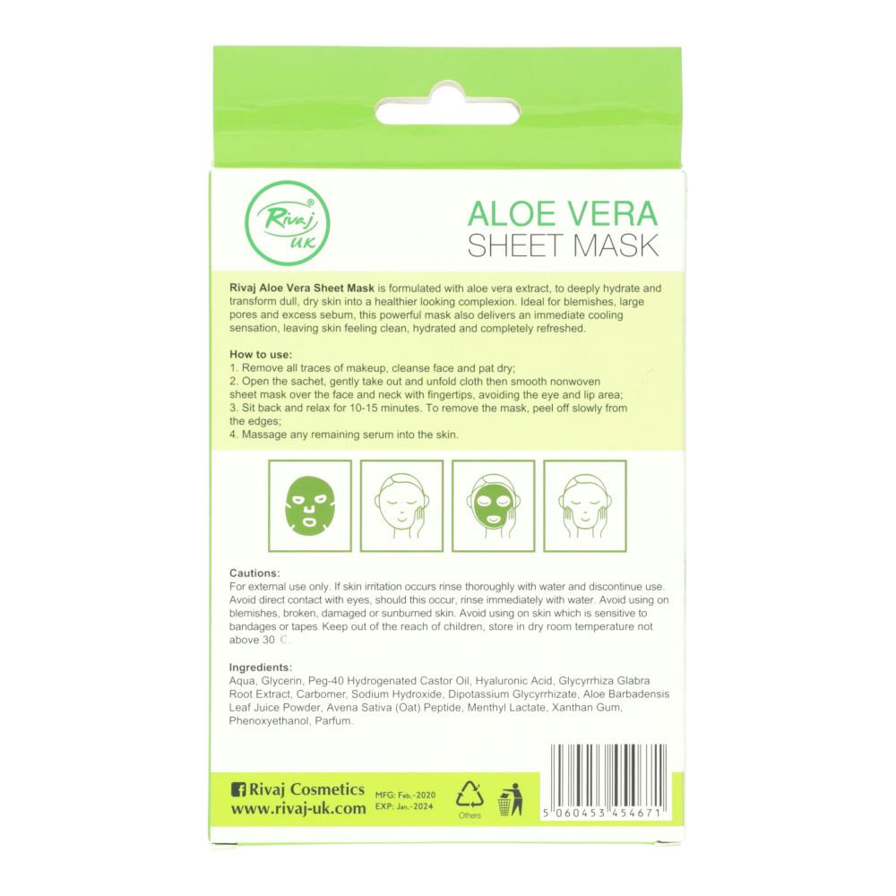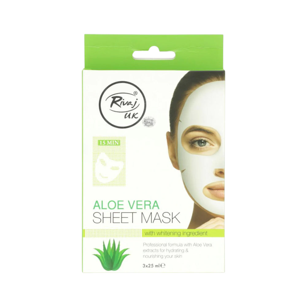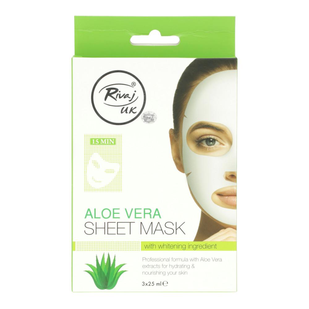 Rivaj Uk Aloe Vera Sheet Mask with Whitening ingredient,Aloe Vera Extract, Hydrate Dull and Dry Skin. Professional formula with Aloe Vera extracts for hydrating & nourishing your skin