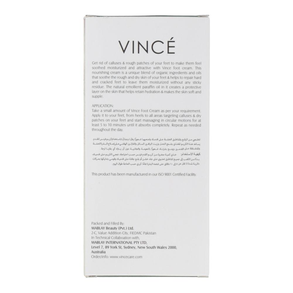 Get rid of calluses & rough patches of your feet to make them feel soothed moisturized and attractive with Vince foot cream. This nourishing cream is a unique blend of organic ingredients and oils that soothe the rough and dry skin of your feet & helps to repair hard and cracked feet to leave them moisturized without any sticky residue. The natural emollient paraffin oil in it creates a protective layer on the skin that helps retain hydration & makes the skin soft and supple. Its unique formula specifically designed to fight against oily skin and acne problem.